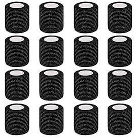 Clooflar 16 Pack Self Adhesive Bandage Wrap, 2 X 5 Yards Black Elastic Cohesive Bandage Wrap for Sports, Wrist, Ankle and Vet Wrap, Grip Tape