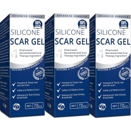 100% Silicone Scar Gel 3-Pack - 3 x 1.06oz Scar Cream for Long-Term Scar Care - C-Section, Surgery, Acne, Keloids, Burns - Fades Old & New Scars Fast