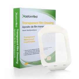 Transparent Film Dressing 4\'\' x 4.75\'\', 50 Packs, Waterproof Wound Cover Bandage, Post Surgical Shower or Tattoo Aftercare Bandage, IV Shield, Transparent Adhesive Patch