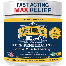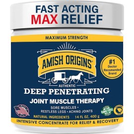Amish Origins Deep Penetrating Joint & muscle therapy Cream Is Formulated To Provide Long-Aching Joints, Sore Muscles, Restless Legs, Bruises, Sprains, Backache And More. QUICK-ACTING Joint & muscle therapy FORMULA: Amish Origin Medicated Joint & muscle therapy Cream Has Earned Its Reputation As One Of The Best On The Market, And ThatS Because It D..