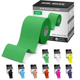 SB SOX Original Cotton Kinesiology Tape Roll - Best Latex Free Athletic Tape for Muscles/Joints - Waterproof, Stretchy, and Gentle on Skin (16ft) (Green)