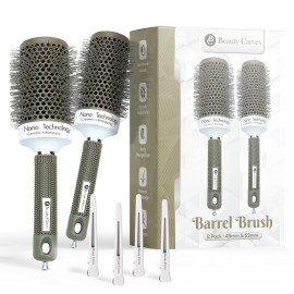Beauty Carves Round Brush Set, 45&53mm Barrel with 4 Clips - Round Brush for Blow out with Flexible Nylon 66 Bristles Nano Ionic Heat Resistant Tech for Professional Curling, Styling & Shining Texture