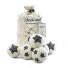 Friendsheep Wool Dryer Balls, Organic Reusable Fabric Softener Alternative for Laundry, Handmade, Fair Trade, Hypoallergenic, Eco-Friendly, Plastic-Free (6 Pack XL - Stars Galore)