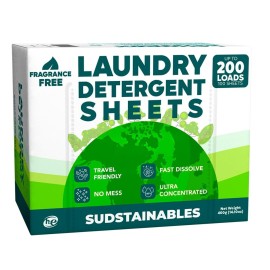 Sudstainables Laundry Detergent Sheets 200 Loads - Dissolvable Laundry Sheet for Washing Machines, Compact Alternative to Liquid & Powder Detergent, Travel-Friendly Soap | Fragrance Free
