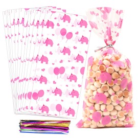 Pink Elephant Baby Shower Cellophane Treat Bags Cute Elephant Candy Bags blue Elephant Baby Shower Supplies Favor Bags Goodie Bags 1.You will get 100 pink elelphant baby shower cello cellophane treat bags 5X11(12.7X28 cm), 1.4mil thickness with 100 colorful twist ties, sufficient quantity can meet your party,trading,birthday,holiday,baby shower par..