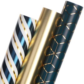 Ribbli 3 rolls quality teal and gold 17inch mini roll wrapping paper assortment,perfect for Father\'s Day,Wedding,Anniversary and Birthday...