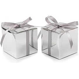 COTOPHER 25pcs Wedding Favor Boxes, Paper Gift Boxes 6x6x6 Inches Small Gift Boxes with Ribbons Small Boxes for Gifts, Crafting, Cupcake, Candy, Bridesmaid Proposal Boxes. Easy Assemble Boxes Application: Imagining that what a romantic and elegant wedding gift when you present to your guest with this favor box. Perfect for wedding/ baby shower/ bi..