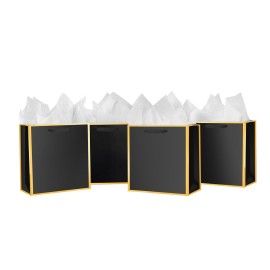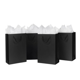 SHIPKEY 10 Pack Black Gift Bags, Medium Paper Bags with Black Tissue Paper, 8x4x11 Inches Paper Bags for Holidays (20x10x28 cm)