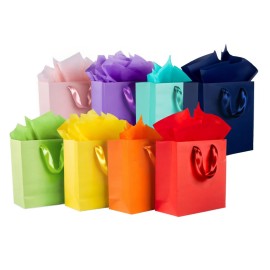 SHIPKEY 8 Rainbow Gift Bags with Tissue Paper, 8.7x3.9x7.1 Inches Colorful Paper Bags for Birthday, Party, Wedding, Baby Shower, Thanksgiving (8 Colors, 22x10x18cm)