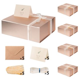LIFELUM 5 Pack Gift Boxes 13 x 10 x 4.7 inch Large Gift Boxes with Magnetic Lids Rose Gold Sturdy Gift Box Full Accessories Contains Card,Sticker,Ribbon, Shredded Paper Filler for Graduation Weeding Gifts..