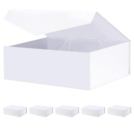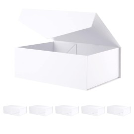 BLK&WH 6 Collapsible Gift Boxes with Magnetic Lids, Bridesmaid Proposal Boxes, Matte White (10.5x7.7x3.8 Inches)