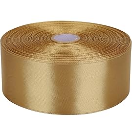Baocuan 1-1/2 inch Golden Satin Ribbon 50 Yards Solid Fabric Ribbons Roll for Wedding Invitations, Bridal Bouquets, Sewing, Party Decorations, Gift Wrapping and More