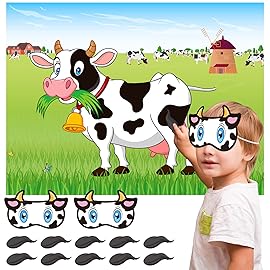 NEBURORA Pin The Tail on The Cow Game - The product is designed for farm supplies, birthday party decorations. - The 30 tail stickers are also reusable, easy to stick and peel off.The number of tails is sufficient, and many people can play together. -Reusable, well-designed game allows for multiple usesperfect for home decoration, wall decorations,..