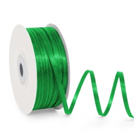 1/8 Wide x 100 Yards Single Face Polyester Satin Ribbon, Satin Ribbon for Crafts, Gift, Hair Bows, Wedding Party Decoration, Bow Making & Other Projects (Green)