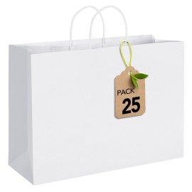 MESHA Gift Paper Bags White Large 16x6x12 25 Pack,Kraft Gift Bags with Handles for Shopping Birthday Party Favor Grocery Retail Merchandise Wedding Sacks