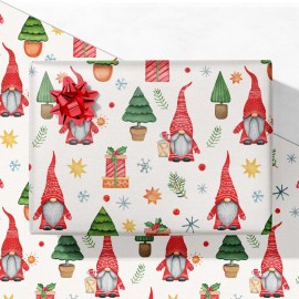 Add a touch of whimsy to your holiday gifts with this Christmas gnome wrapping paper set. Each pack comes with 4 folded sheets (28 x 40 each), totaling ~31 sq. ft of coverage, perfect for wrapping several medium or small presents. The design showcases cheerful gnomes in tall red hats surrounded by Christmas trees, gift boxes, stars, and snowflakes,..