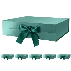 GREEN BEAN 6 Large Gift Boxes with Lids for Presents 13x9.7x3.4 Inches, Christmas Green Magnetic Gift Box with Ribbon, Bridesmaid Proposal Box, Luxury Gift Boxes (Glossy Green)