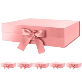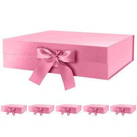 GREEN BEAN 6 Large Gift Boxes with Lids for Present 13x9.7x3.4 Inches, Pink Magnetic Gift Box with Ribbon, Bridesmaid Proposal Boxes, Luxury Gift Boxes (Glossy Pink)