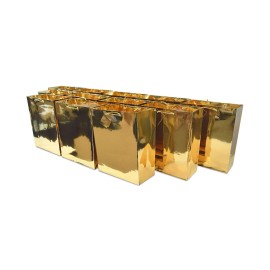 These small, luxury metallic gold paper gift bags from OccasionAll are the ideal choice to elevate your gift-giving experience this Christmas season. Crafted from premium, long-lasting art paper that can be reused or recycled, each bag is designed for both personal and professional events. Measuring 6 wide by 3 deep by 7.5 tall, each bag features h..