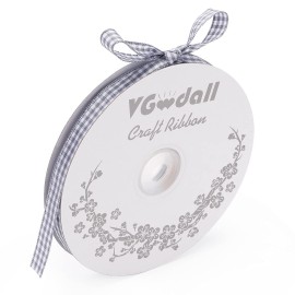 VGoodall Dark Grey Gingham Ribbon, 3/8 x 50Yd Picnic Craft Ribbon Dark Grey Ribbons for Hair Accessories Craft and Gift Wrapping