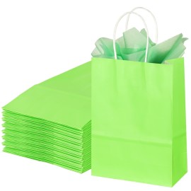 BLEWINDZ 32Pcs Small Paper Gift Bags with Tissues, Green Party Favor Bags with Handles, 8.7 Goodie Bag for Birthday, Shopping, Party Supplies