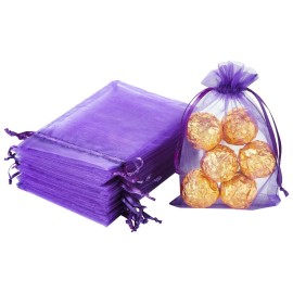 WenTao 100PCS Sheer Drawstring Organza Bags, 4 x 6 Inch Pouches Candy Jewelry Party Wedding Christmas Favor Gift Bags Purple