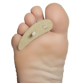 This best selling hammer toe crest cushion and buttress pad helps reduce pressure caused by calluses and hammer toes. The sturdy pad supports toes that bend under. The toe loop ensures a comfortable and proper fit. This product can be worn with most shoes and is machine washable. It is available for both the right and left in three different sizes ..