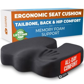 5 STARS UNITED Seat Cushion for Tailbone Pain Relief - Large Memory Foam Cushion for Coccyx, Hip, Sciatica & Post-Surgery Recovery - Wheelchair, Car, Desk, Gaming & Office Chairs, Black