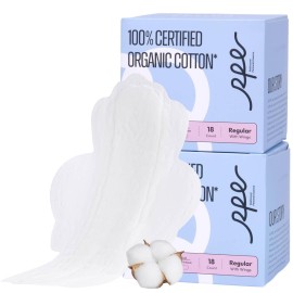 100% Organic Pads for Women, Organic Cotton Cover Pad - Regular Absorbency, Unscented, Ultra Thin Pads with Wings for Women (Regular, Size 3, 18 Count)