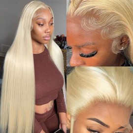 bunGiol 613 Lace Front Wig Human Hair 13x4 Hd Transparent Blond Wig Human Hair 180% Density 12A Brazilian Glueless Straight Lace Front Wigs Human Hair Pre Plucked With Baby Hair Bleached Knots 28inch..