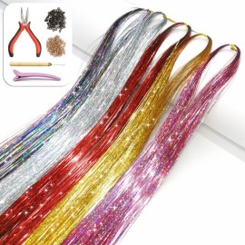 Hair Tinsel Kit with Tools and Instruction Easy to Use 1000 Strands 47 Inches Glitter Tinsel Hair Extensions for Women and Girls, Sparkling Shinny Fairy Hair Accessories for Christmas New Year