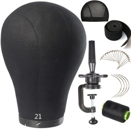 ZGCYSMHT 21 Inch Wig Head Cork Canvas Block Head Mannequin Head With Stand for Making Wigs (21\'\'-24\'\'INCH)
