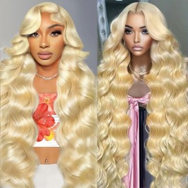 JINNOO 613 Lace Front Wig Human Hair 200 Density Blonde Wig Human Hair 13x6 HD Lace Front Wigs 613 Body Wave Lace Front Wigs Pre Plucked 28 Inch