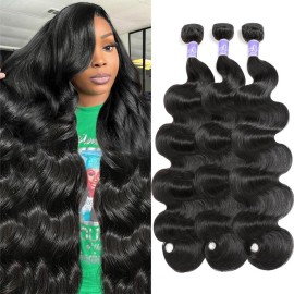 UDesire 12A Body Wave Bundles Human Hair(18 20 22inch) 100% Unprocessed Human Hair 3 Bundles Body Wave Brazilian Hair Bundles Weave Natural Black Color