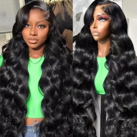 Body Wave 13x6 HD Lace Front Wig Human Hair Material: 100% Unprocessed Brazilian Virgin Human Hair. Clean and Healthy. Body Wave 13x6 Lace Front Wigs Human Hair Quality: No Shedding, No tangle, Soft And Silky, Can Be Restyled.Very Natural After Installed . 13x6 Transparent HD Lace Wig Body Wave Color: Natural Black Color.Can be Dyed and Bleached...