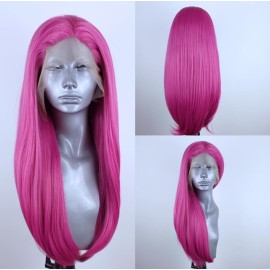 ELESTY Pink Synthetic Lace Front Wig Long Straight Pre Plucked Natural Hairline Synthetic Hair Wig Hot Pink Glueless Heat Resistant Fiber Hair Wig for Fashion Women Hair Material:100% High Quality Heat Resistant Synthetic Hair Fiber Hair Length: 24inch Hair Style:Straight Hair Color:Pink Cap Size: Medium Cap Size 22.5Inch Circumference Comes with a..