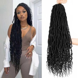 7 Packs 30 Inch Faux Locs Crochet Hair for Black Women Soft Locs Crochet Hair for Butterfly Locs Curly Wavy Goddess Locs Crochet Loc Hair (30 inch(pack of 7), 1B)