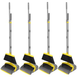 NACENA Broom and Dustpan Set, 52-in Long Adjustable Handle Broom Dustpan Combo with Dustpan Teeth to Automatically Clean Hair Suitable for Home Kitchen Office Hall Floor (Grey&Yellow), 4 Pack