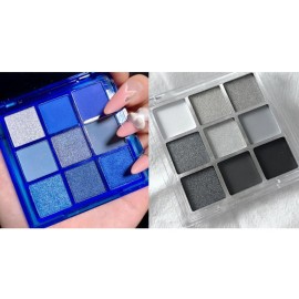 Yeweian 9-Color Glitter Matte Blue Eyeshadow Palette, Silver Grey, Light Blue, Highly Pigmented Waterproof Corpse Bride Makeup for Blue Eyes