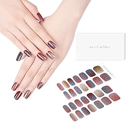 DANNI & TONI Semi Cured Gel Nail Strips Metallic Multicolor Glitter Gradient Gel Nail Wraps Gift for Woman | Twilight