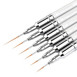 Liner Brush for Nails, 6Pcs Thin Nail Art Brushes Professional Nail Detail Brush for Gel Polish Sizes 5/7/9/11/15/25mm (Silver)