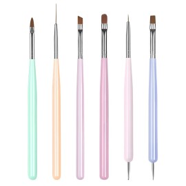 Nail Art Brushes 6PCS Nail Brush Set with Gel Polish and Liner Brush and Dotting Pens for Home and Professional Salon Use