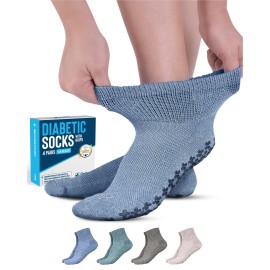 Diabetic Socks with Grips for Women and Men - 4 Pair | Light Blue , Blue, Purple , Pink | Neuropathy Socks for Women | Hospital Socks with Grips for Women | Ankle Diabetic Non Slip Socks for Elderly