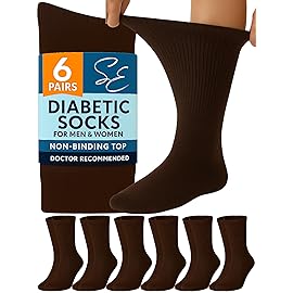 Special Essentials Diabetic Socks for Men & Women - 6 Pairs of Non-Binding Extra Wide Top Cotton Neuropathy Socks - Crew Length, Brown, 13-15