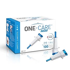 ONE-CARE PRO Safety Lancets, Top Push Button Activated, 21G x 1.8mm, 100/bx, Sterile, Gentle & Convenient Sampling
