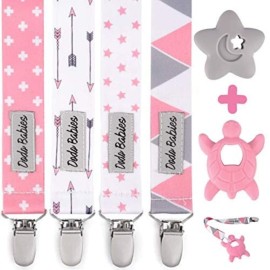 Dodo Babies presents the Pacifier Clip & Teether Toy Set, a versatile tool for parents seeking both style and convenience. As cooler months approach, this set is ideal for keeping pacifiers and teething toys clean, secure, and within reach during outings or at home. The set includes four fabric pacifier clips for baby boys and girls, featuring a un..