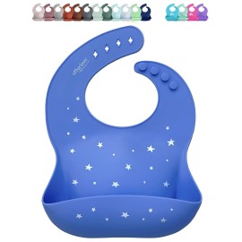 otterlove Silicone Bib - 100% Pure Platinum LFGB Baby Bibs with No Fillers (Single Bib - Very Peri - Stars Print)