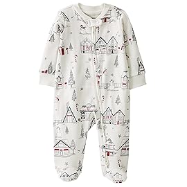 little planet by carter\'s Neutral Sleep and Play made with Organic Cotton, Winter Village, 3M