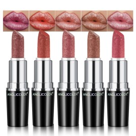 Anglicolor Metallic Glitter Pink Plum Brown Lipstick High Impact Lipcolor,Moisturizing Creamy Formula,Lipstick For Women,Smooth and Non-Sticky,Full-Coverage Lip Color (C, 20g)