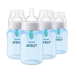 Philips Avent Anti-Colic Bottle with AirFree Vent, 9oz, with Flow 2 Nipples, 1m+, 4pk, Blue, SCY703/24